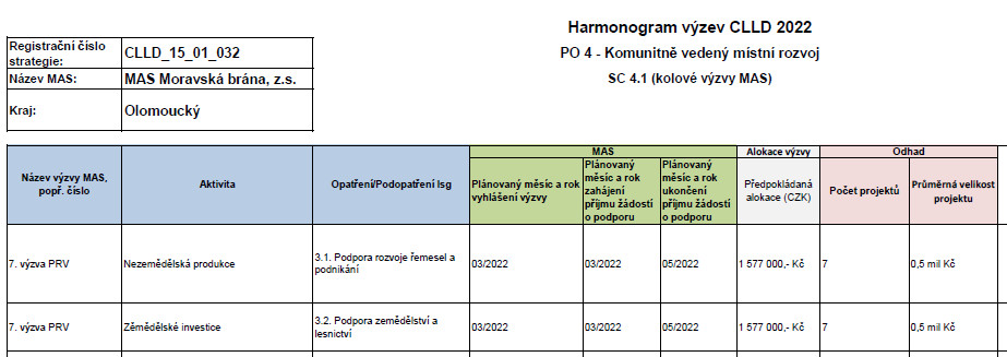 Harmonogram výzev na rok 2022